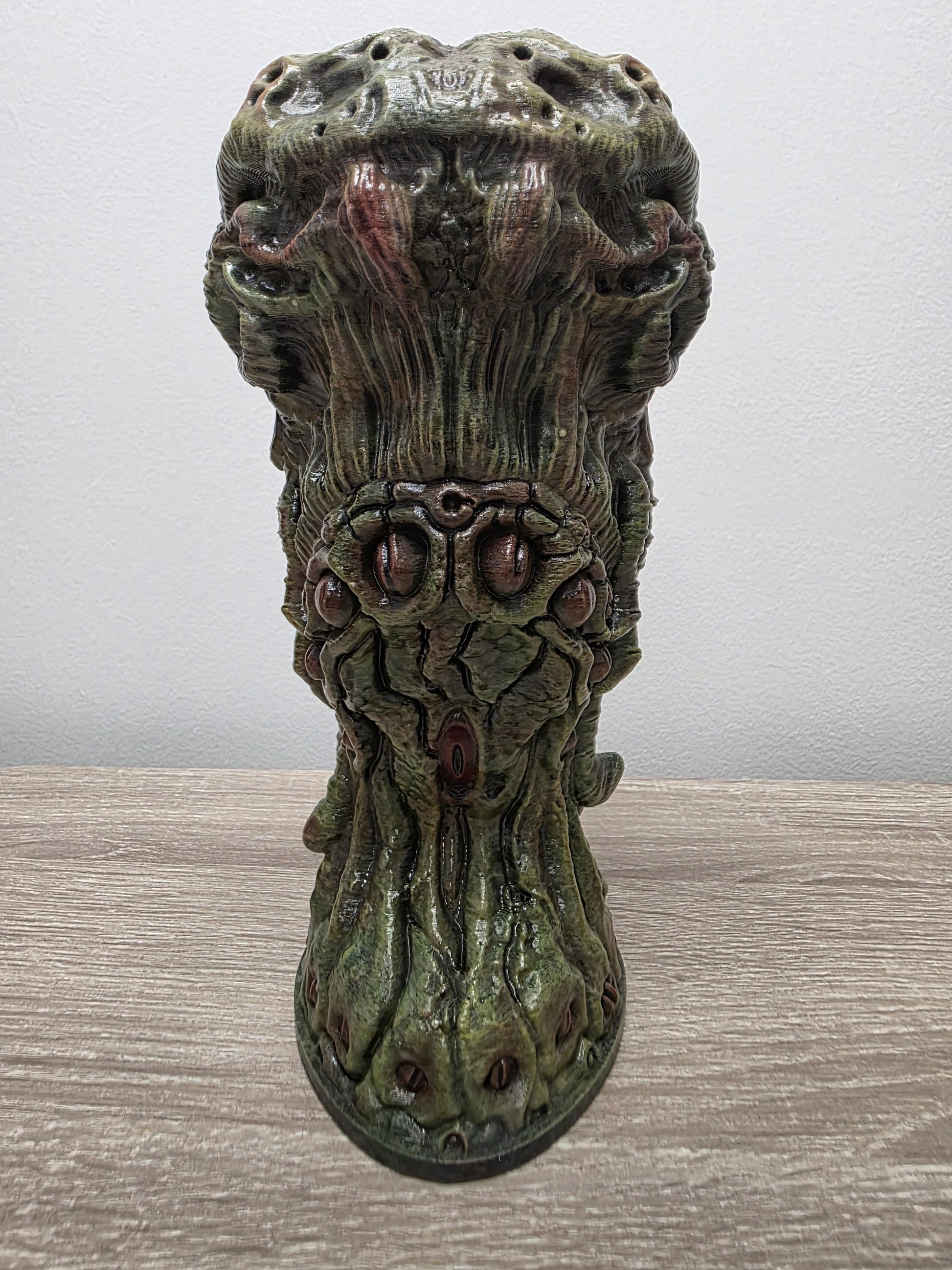 Each statue is precisely 3D printed using environmentally safe PLA, then professionally primed with automotive-grade primers to ensure durability and flawless paint adhesion. The piece is entirely hand-painted using high-end SPFX acrylic paints, with layered textures, organic coloration, and atmospheric depth achieved through advanced airbrushing techniques.