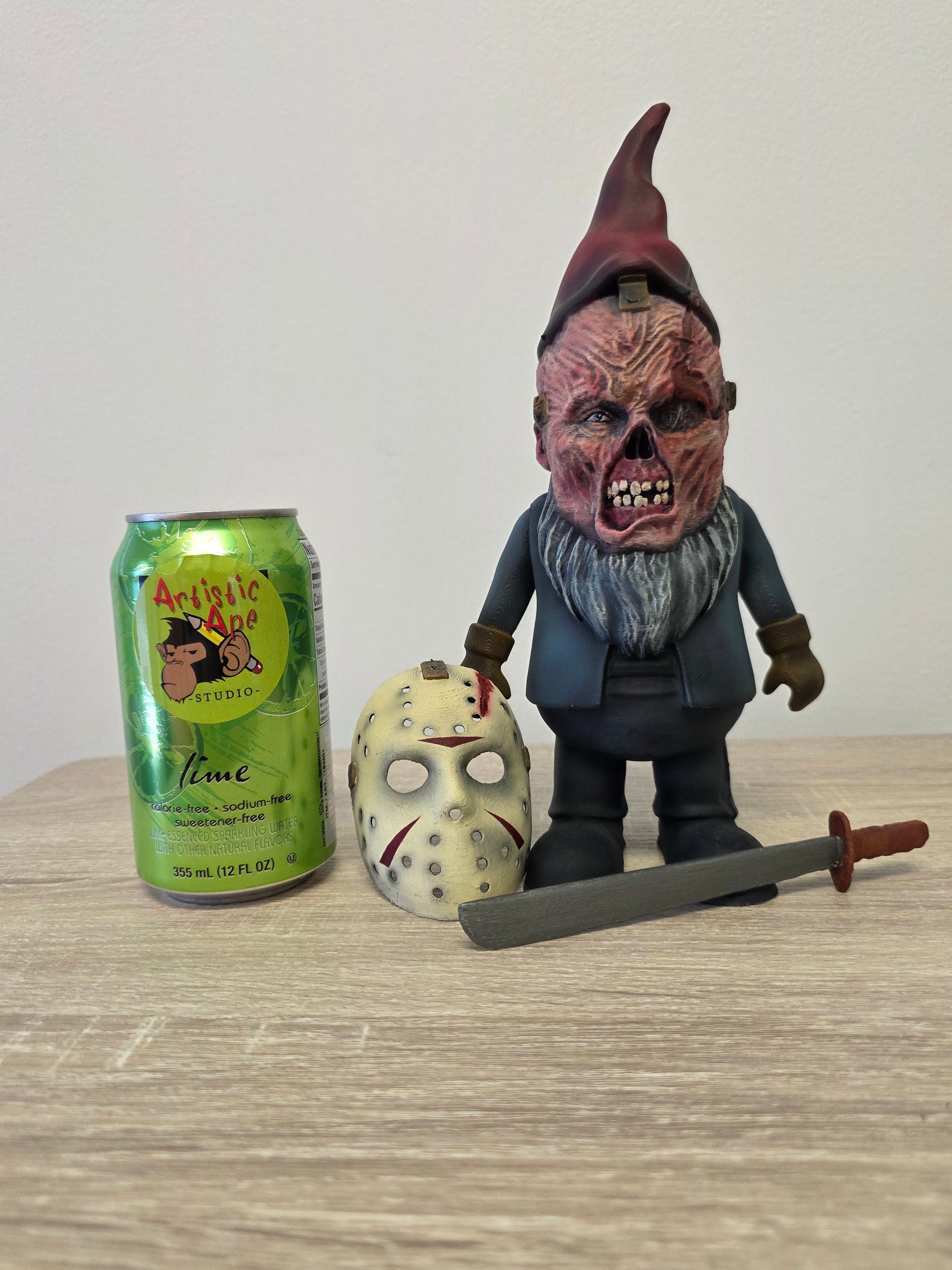 Jason Voorhees from the cult horror film Friday the 13th, reimagined in our signature gnome style. This collectible stands just under 10 inches tall, measuring approximately